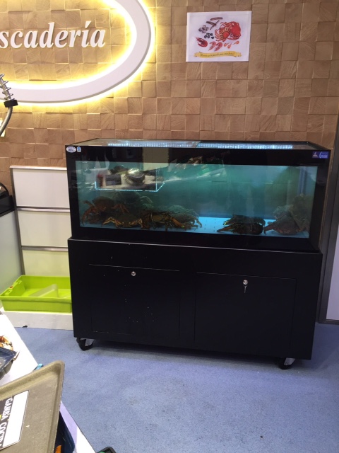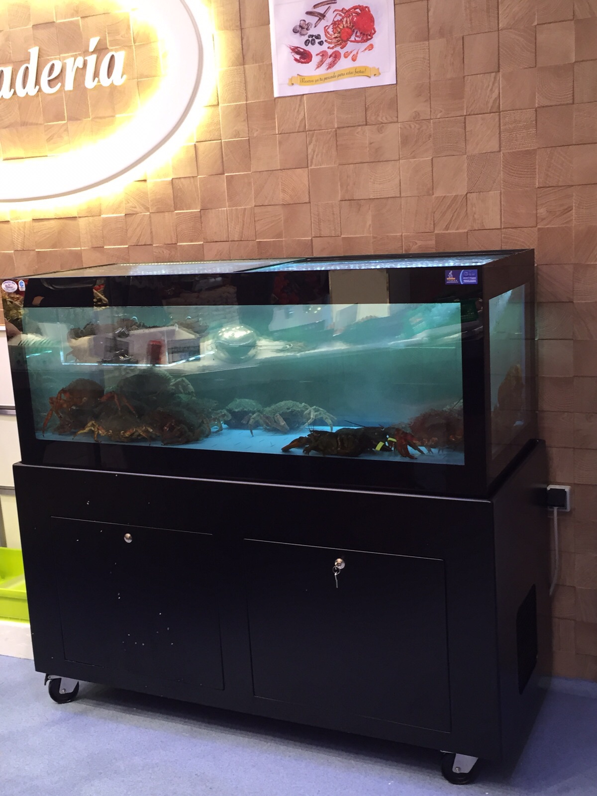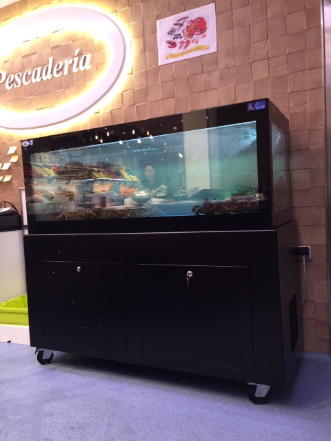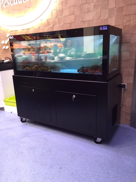 En esta ocasión hemos instalado un vivero modelo Mercury VTR, realizado en fibra de poliéster, esta instalación por su estética se integra en cualquier ambiente, pudiendose instalar tanto en pescaderías como en restaurantes.