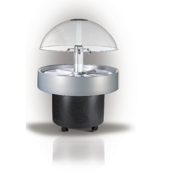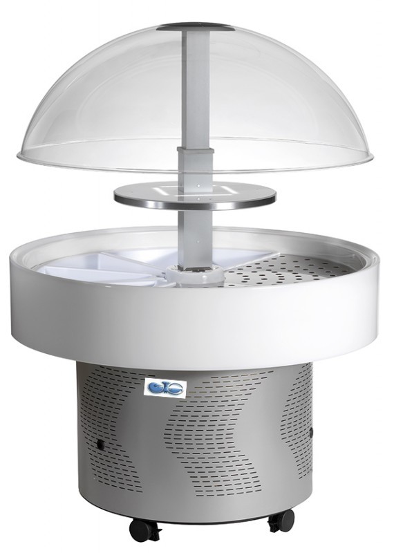 Cubeta circular realizada con cuerpo en acero inoxidable AISI 304, exento de corrosión y paneles laterales y estructura.